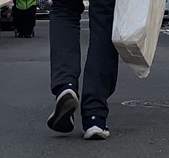 눈에 띄게 뒤꿈치가 아닌 옆면이 안쪽으로 눌려 있었고 걷는 모양도 엉성했다.